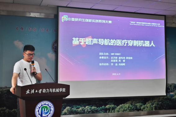 第七支队伍是动力与机械学院的UNP-ROBOT队(队长:武开群),展示了基于超声导航的医疗穿刺机器人。其能够通过超声波自主识别病灶与穿刺针,对穿刺过程导航,实现自主穿刺提取组织样本进行诊断。