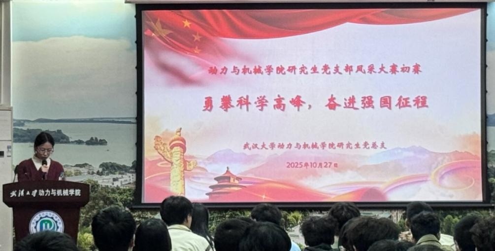 (通讯员:陈柄锟、韩雨亭、陈磊)10月27日,武汉大学研究生党支部风采大赛动力与机械学院初赛在我院B9316学术报告厅举行。院党委副书记匡松、学生工作办公室主任刘梦娜、本科生辅导员文梓航、研究生党总支学生副书记朱彬、研究生党总支委员及各党支部成员参加此次活动。比赛由研究生党总支纪检委员徐静蕾主持。