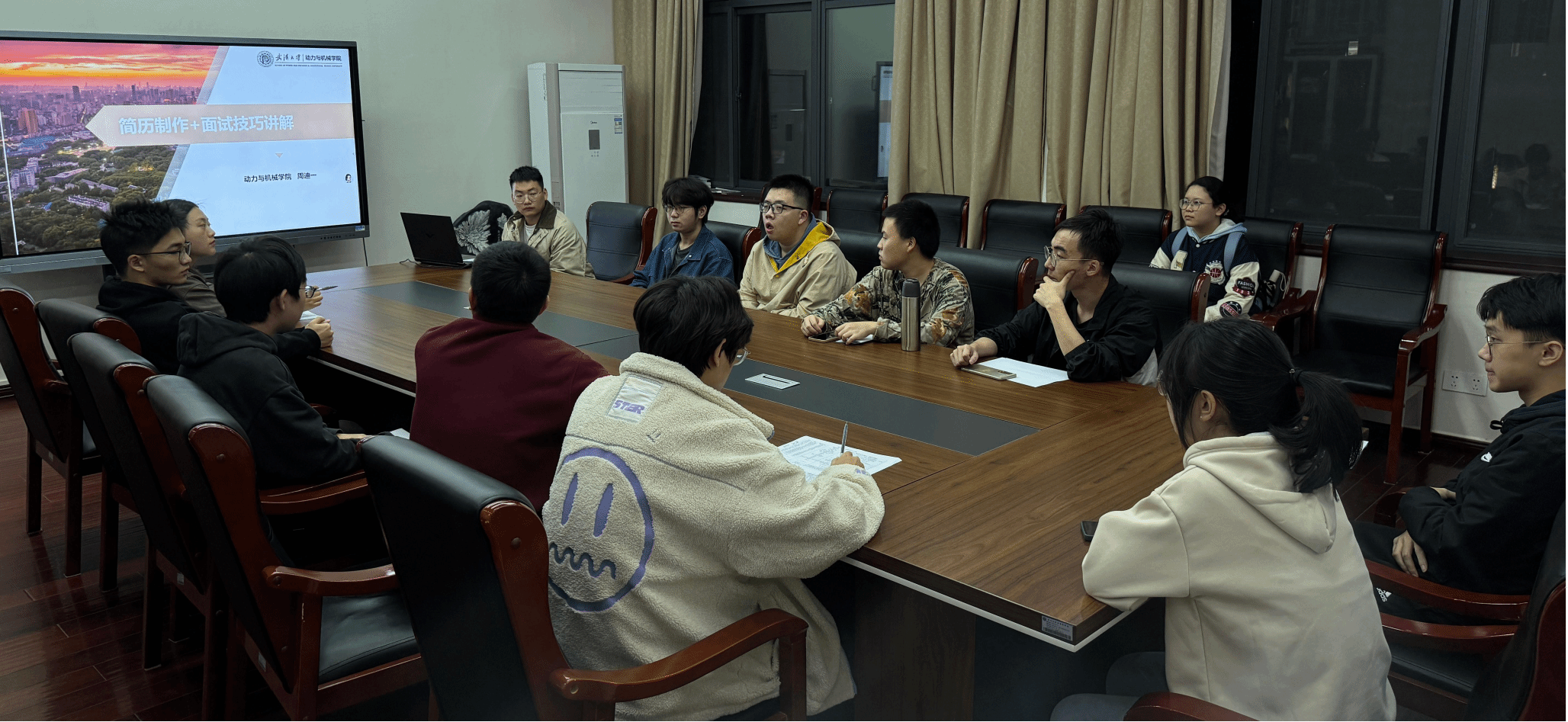 (通讯员:梁沫寒、王圣琪)为助力本科2022级毕业生精准对接就业需求,提升求职竞争力,抢抓秋招关键机遇。11月13日晚,动力与机械学院就业能力提升讲座暨朋辈沙龙在工学部九教B9318顺利举行。学院党委副书记向昭、研究生辅导员周迪一、兼职辅导员王鑫、朱晓亮出席活动,20余名本科毕业生现场参与学习交流。