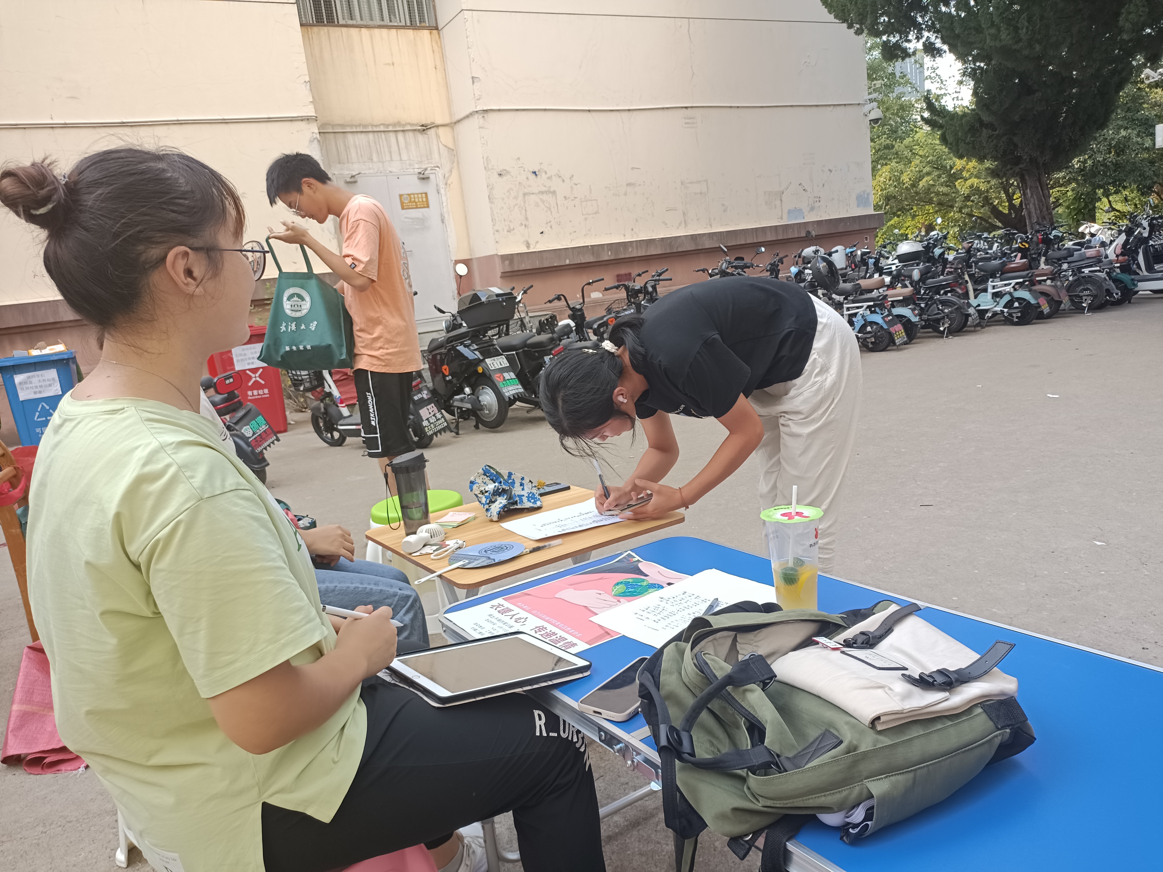 晨曦出露,志愿者们就来到摆摊点开始布置场地,各司其职,井然有序,等待着同学们的到来。