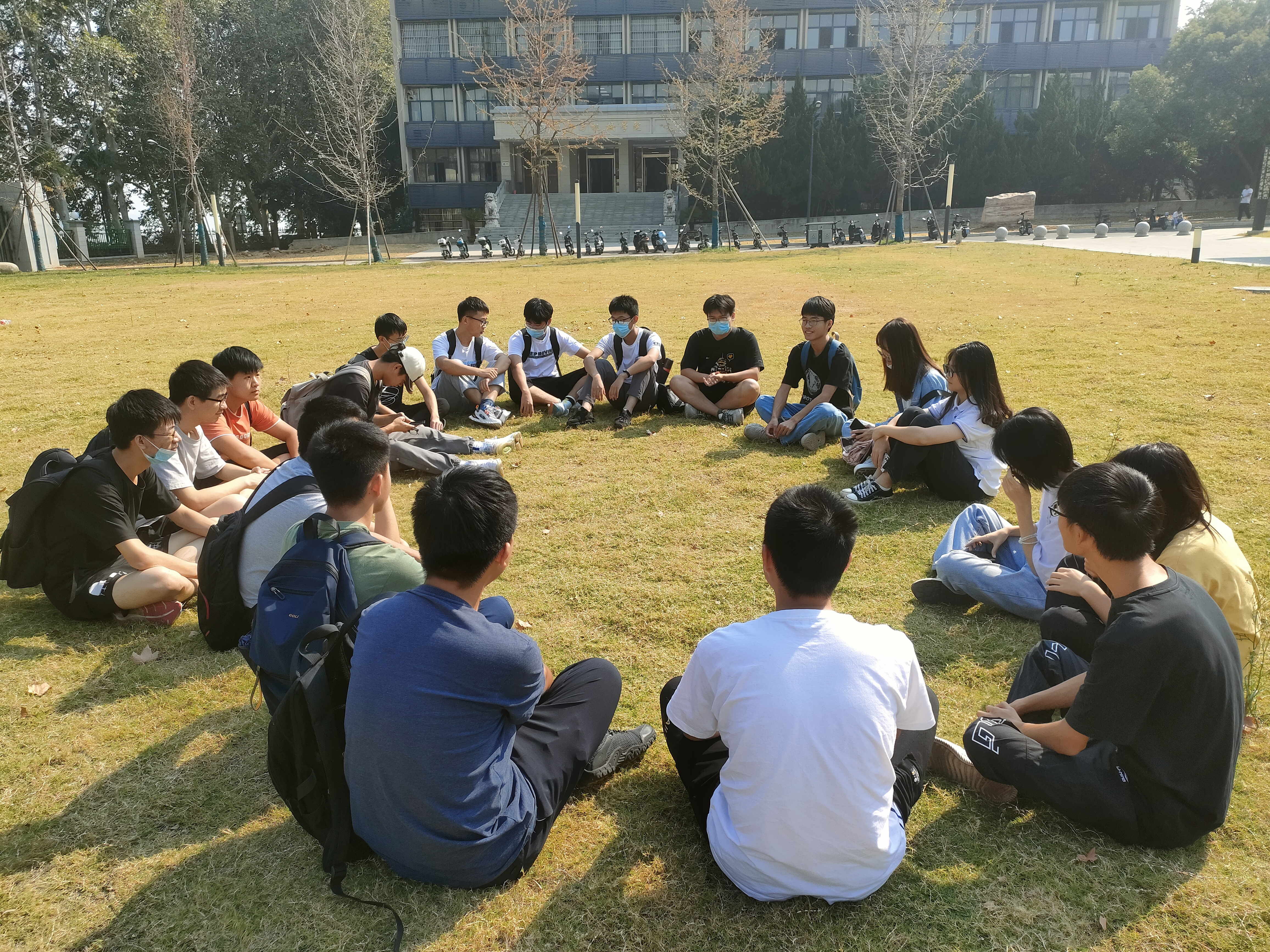 9月29日上午,我院2021级能动二班与能动一班在校同学于工学部主教后草坪举办联合班会,传达防疫要求、提升安全意识和法律意识。