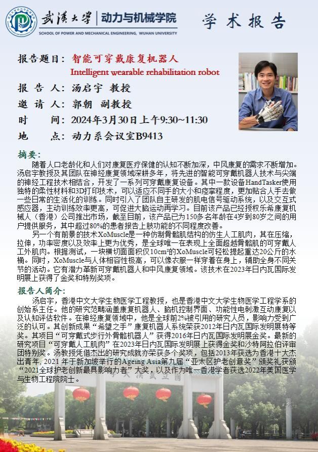 学术报告:智能可穿戴康复机器人