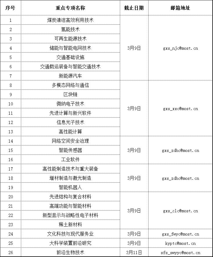 国家科技部近日发布了《关于征求“十四五”国家重点研发计划“煤炭清洁高效利用技术”等26个重点专项2022年度项目申报指南意见的通知》。本次征求意见专项较多,请需要详细了解的老师下载压缩包附件查阅。