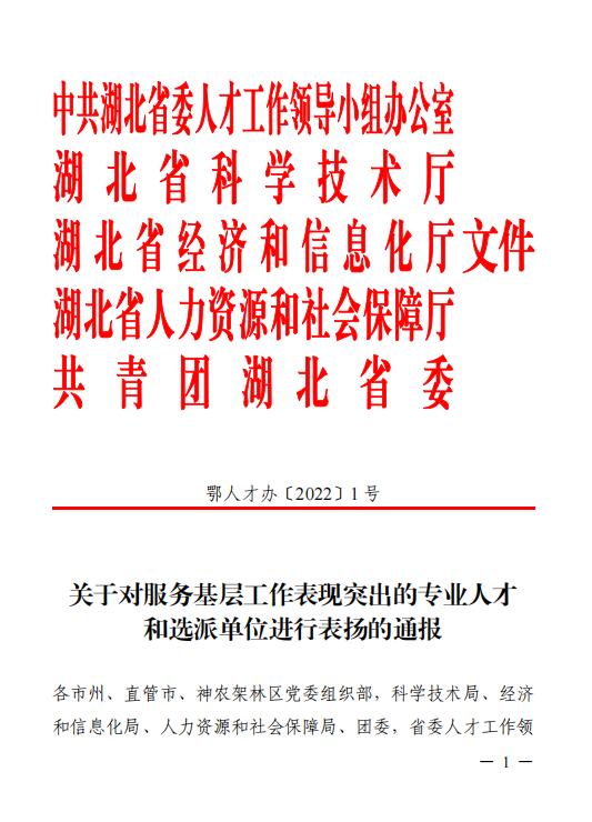 鄂人才办[2022]1号  关于对在2021年服务基层工作中表现突出的专家人才和选派单位进行表扬的通报.pdf