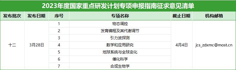 关于对国家重点研发计划“物态调控”等7个重点专项2023年度项目申报指南征求意见的通知