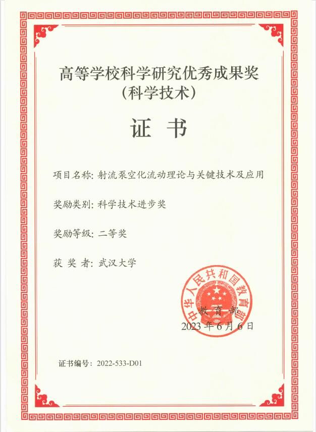 我院龙新平主持,康勇、王晓川、张祖提参与完成的项目“射流泵空化流动理论与关键技术及应用” 获科技进步奖二等奖。
