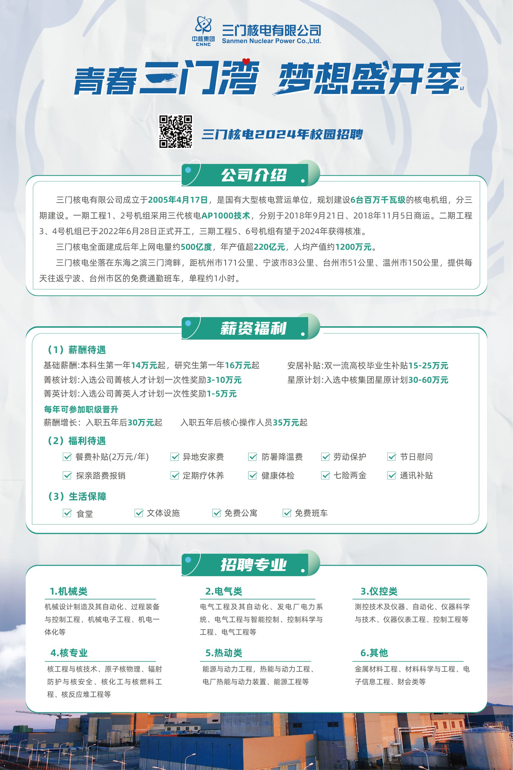 就业中心第一报告厅 3月13日 14:30 | 三门核电2024年校园招聘全面启动