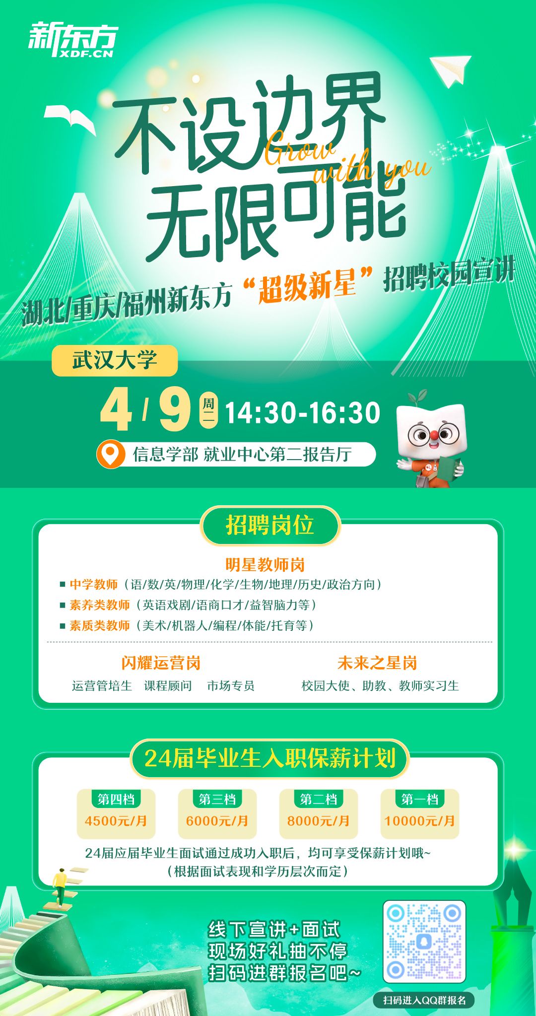 信息学部就业中心第二报告厅 04/09 周二 14:30-16:30 【湖北/重庆/福州新东方校园宣讲】