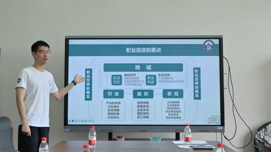 紧接着,刘泽庭围绕“知彼”职业探索的职业信息要点展开介绍,让同学们对职位信息进行重要度排序,并就每位同学的排序情况,结合个人探索兴趣结果,进行深入交流讨论,并对未来发展提出中肯建议。刘泽庭提到,生涯人物访谈和实习实践是我们了解真实职业信息较为有效的方法,希望大家能充分挖掘自身优势,探索职业信息要点,有针对性提升就业竞争力,实现兴趣与职业共赢。