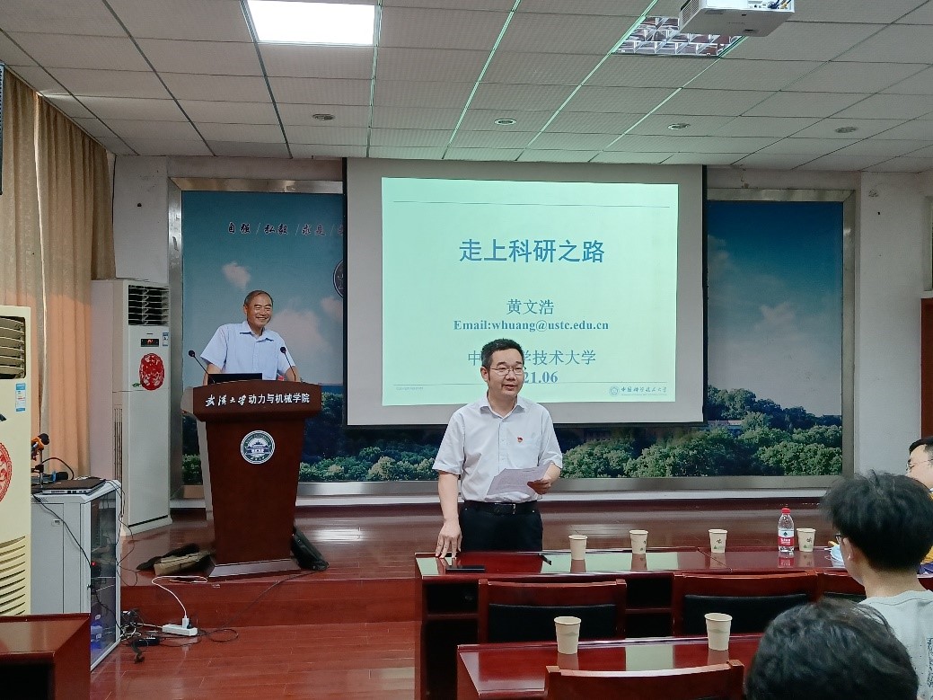 本网讯(通讯员:王伟 编辑:于昊楠 审核:刘泽庭)为帮助广大学子拓宽视野,交流思想,提升科研兴趣,我院研究生党总支邀请了中国科学技术大学黄文浩教授来我院做报告。报告会于6月28日下午在学院学术报告厅举行,报告题目为“走上科研之路”。学院党委书记郭新立、党委副书记李琦,工业科学研究院副院长李辉出席了本次报告会。