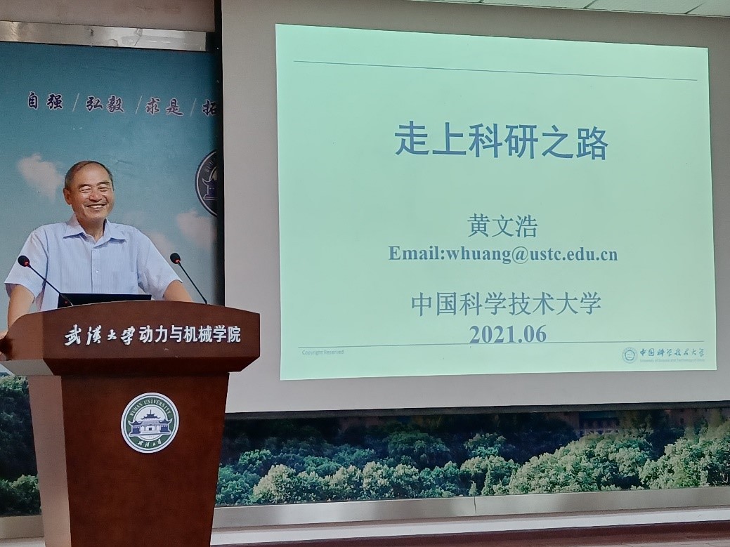 接着,黄文浩为大家做报告。黄教授用了一段聊天式的口吻,介绍了他本次来我院作报告的机缘巧合,朴实幽默的话语顿时拉近了与听众之间的距离,让大家倍感亲切。黄教授从四个方面为大家做报告,分别是个人求学经历、走上科研之路、主要科技贡献和发挥余热。
