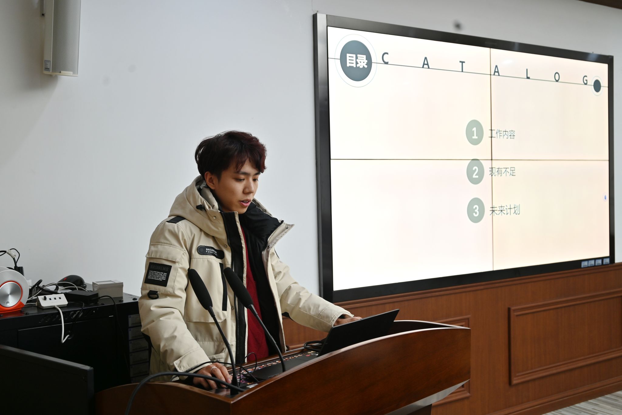 院研究生会秘书部负责人吴智伟同学首先从文档撰写、财务报账、3+班综合事务管理、材料收集等方面对秘书部八个月以来的工作进行总结,提出在处理工作中遇到的困难和不足,做出进一步反思并对下一阶段工作进行规划。同时吴智伟同学提出展望,在过去的时间里秘书部在做好本职工作的同时也积极参与到各部门的活动中去,秘书部将继续加强部门之间的联合协作,共同打造优秀的研究生会。