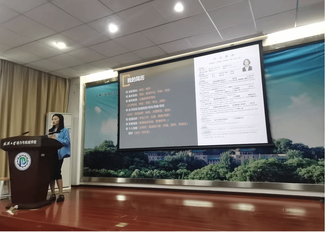 为帮助2025届毕业生提前了解就业市场,掌握简历制作技巧,6月4日下午,学院在B9316报告厅举办“动研职航”2025届毕业生简历制作培训,活动邀请韶音科技资深人力资源吴瑶进行讲解。