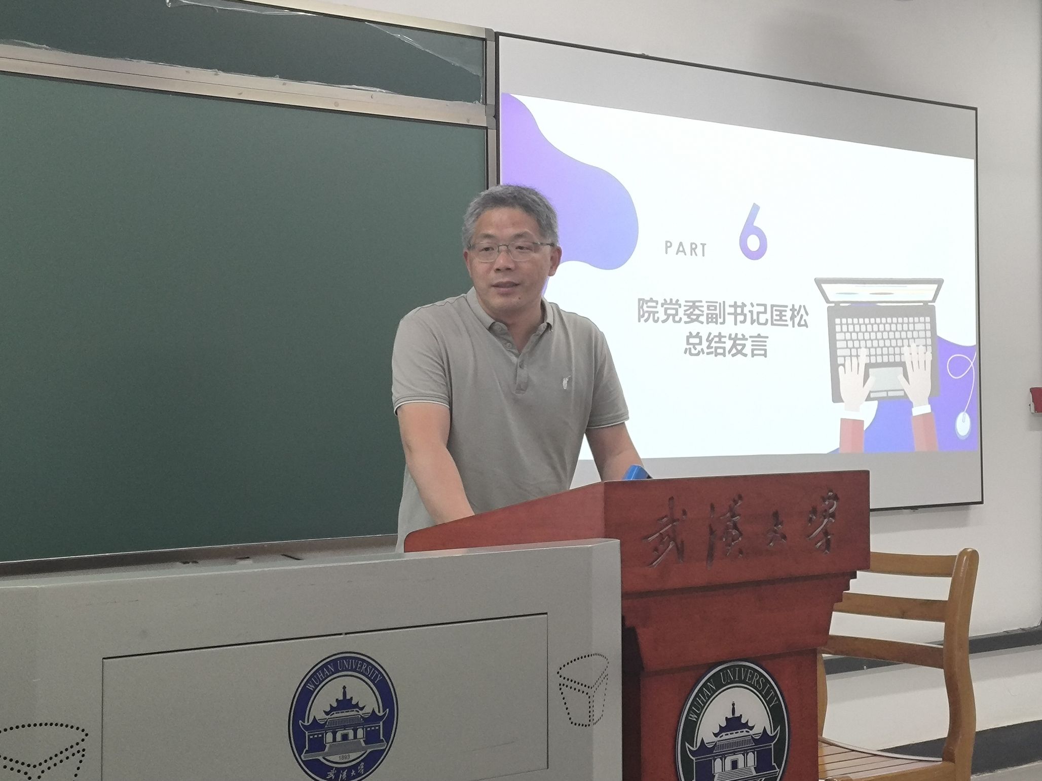 匡松最后总结发言。他鼓励同学们在求职过程中保持自信,勇于尝试,并建议有出国意向的同学提前规划,结合自身实际选择适合的职业方向。他表示,希望同学们在时代大潮中找准定位,实现人生价值。