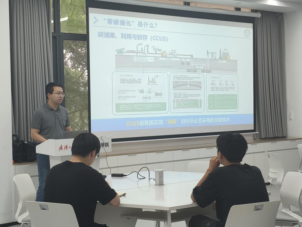 许狄以生动形象、深入浅出的方式,为同学们带来了一场主题为“零碳催化”的专题讲座,系统讲解了零碳催化的基本概念及其在当前能源转型与碳中和背景下的重要性,重点介绍了碳捕集、利用与封存(CCUS)技术的整体流程、关键环节及应用前景。他指出,CCUS技术被誉为实现我国“双碳”目标的重要支撑技术之一,通过高效捕集工业排放中的二氧化碳,结合催化转化技术,将其转化为高附加值化学品和燃料,既能减少碳排放,又能提升资源利用效率,具有显著的环境效益与经济价值。