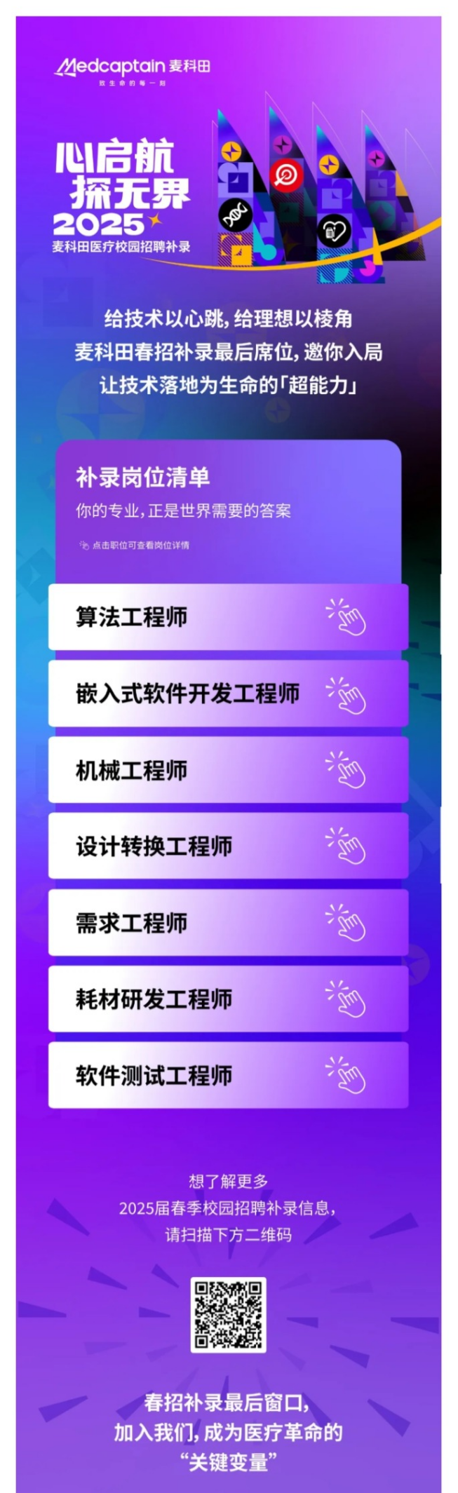 【招聘岗位】算法工程师、嵌入式软件开发工程师、机械工程师、设计转换工程师、需求工程师、耗材研发工程师、软件测试工程师、